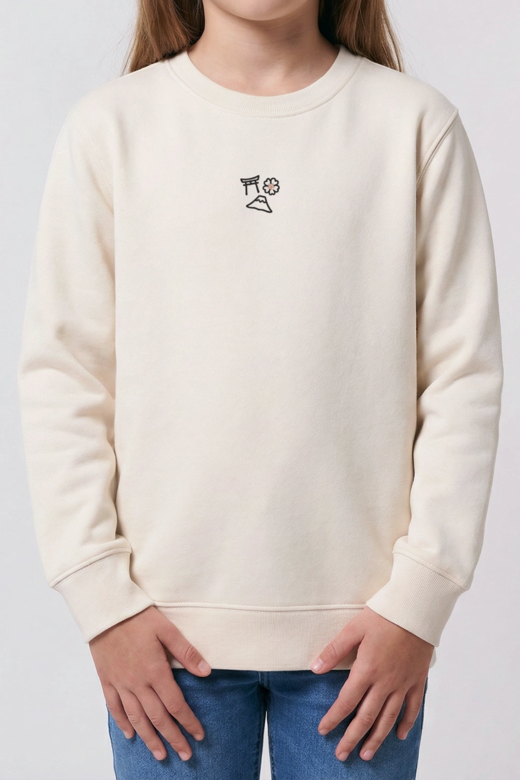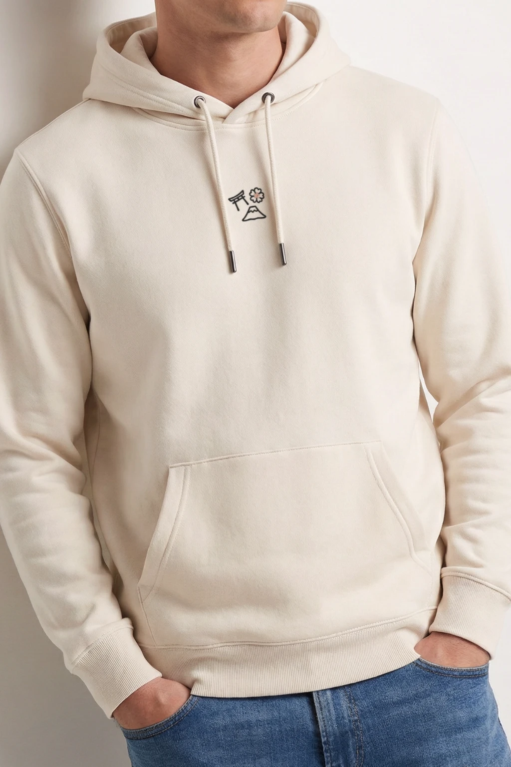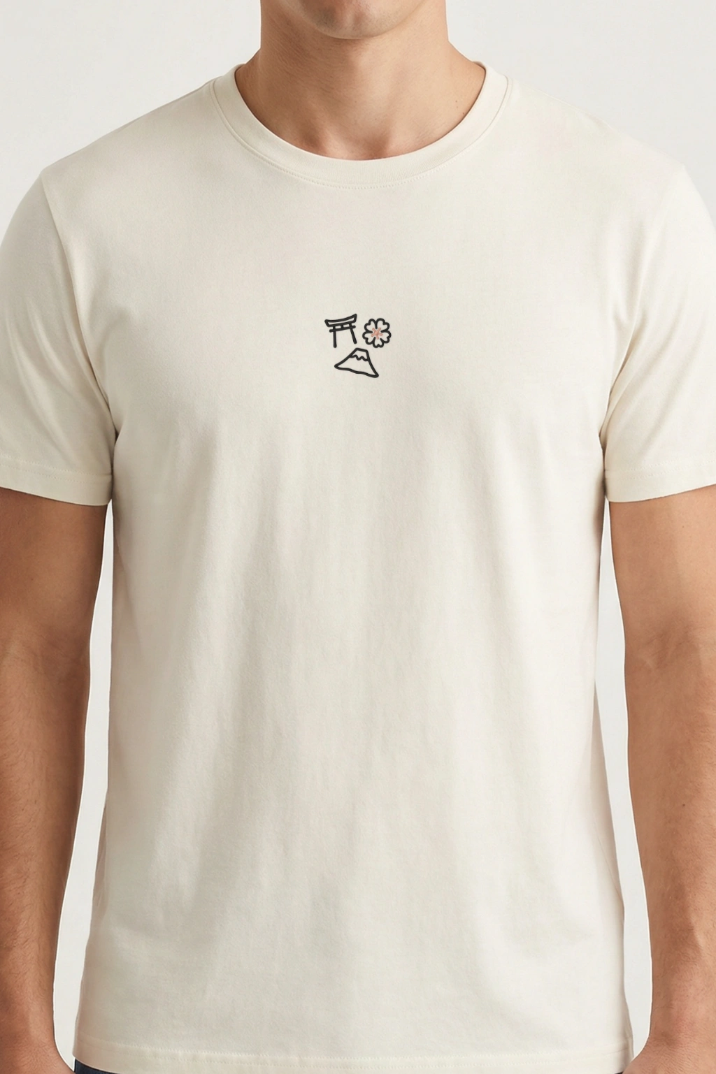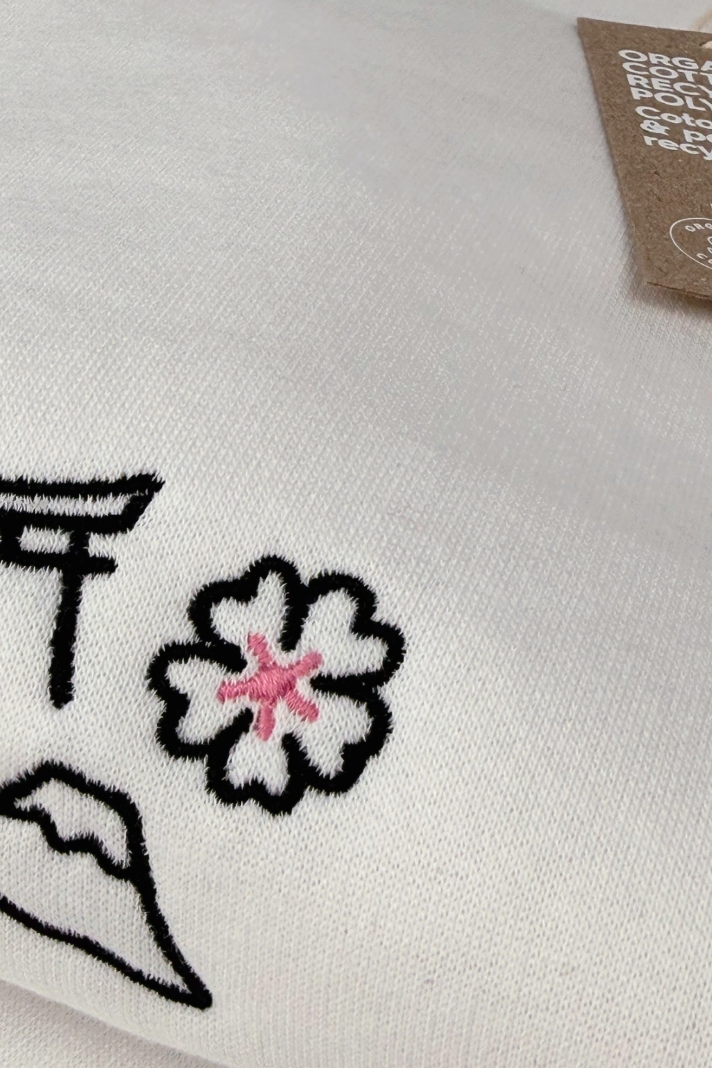 La broderie fine au fil noir est réveillée par une touche délicate de rose sur le Sakura. Une harmonie douce qui apaise le regard sur notre coton bio ivoire. C’est propre, c’est minimaliste, et la qualité est aussi durable que la montagne sacrée.