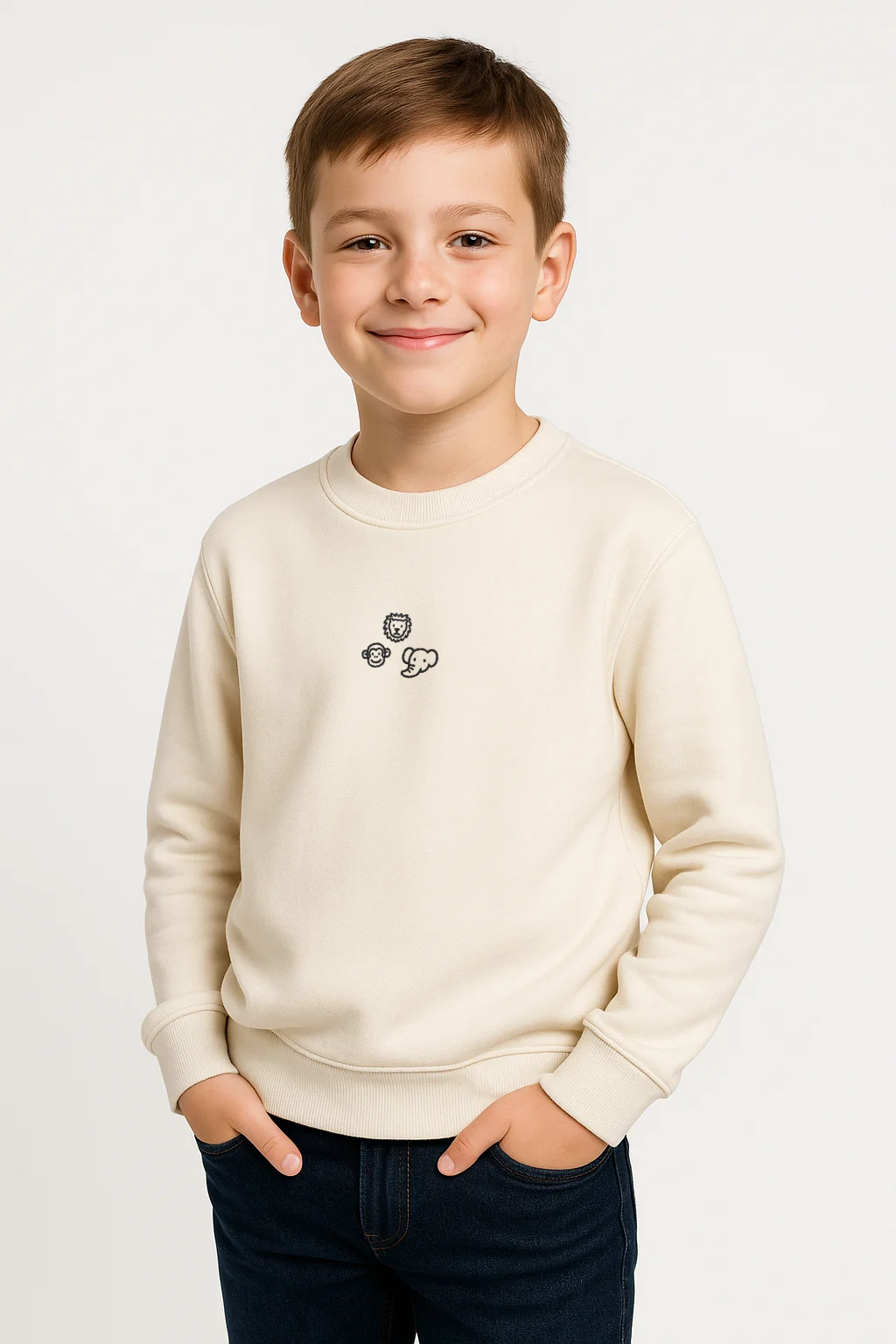 Le trio lion – éléphant – singe invite à l’aventure dans une jungle pleine de rires, de douceur et de courage. Ce motif brodé minimaliste capture l’imaginaire animalier des petits (et des plus grands), avec tendresse et espièglerie.